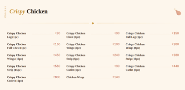 2 Leg + 2 Chest + 4 Wings + 6 Strips + 2 Krusher - ₹860